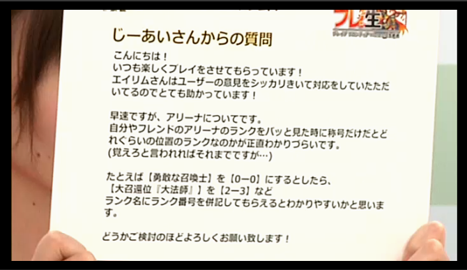 「FHで上がるランク上限を増やして欲しい」 高橋「人生と同じで、昔からコツコツとやっている人にすぐ追いつけるものではない。逆にアリーナはその逆の方向を取っていてこちらは新規には優しくなっている仕様になっている。」 |